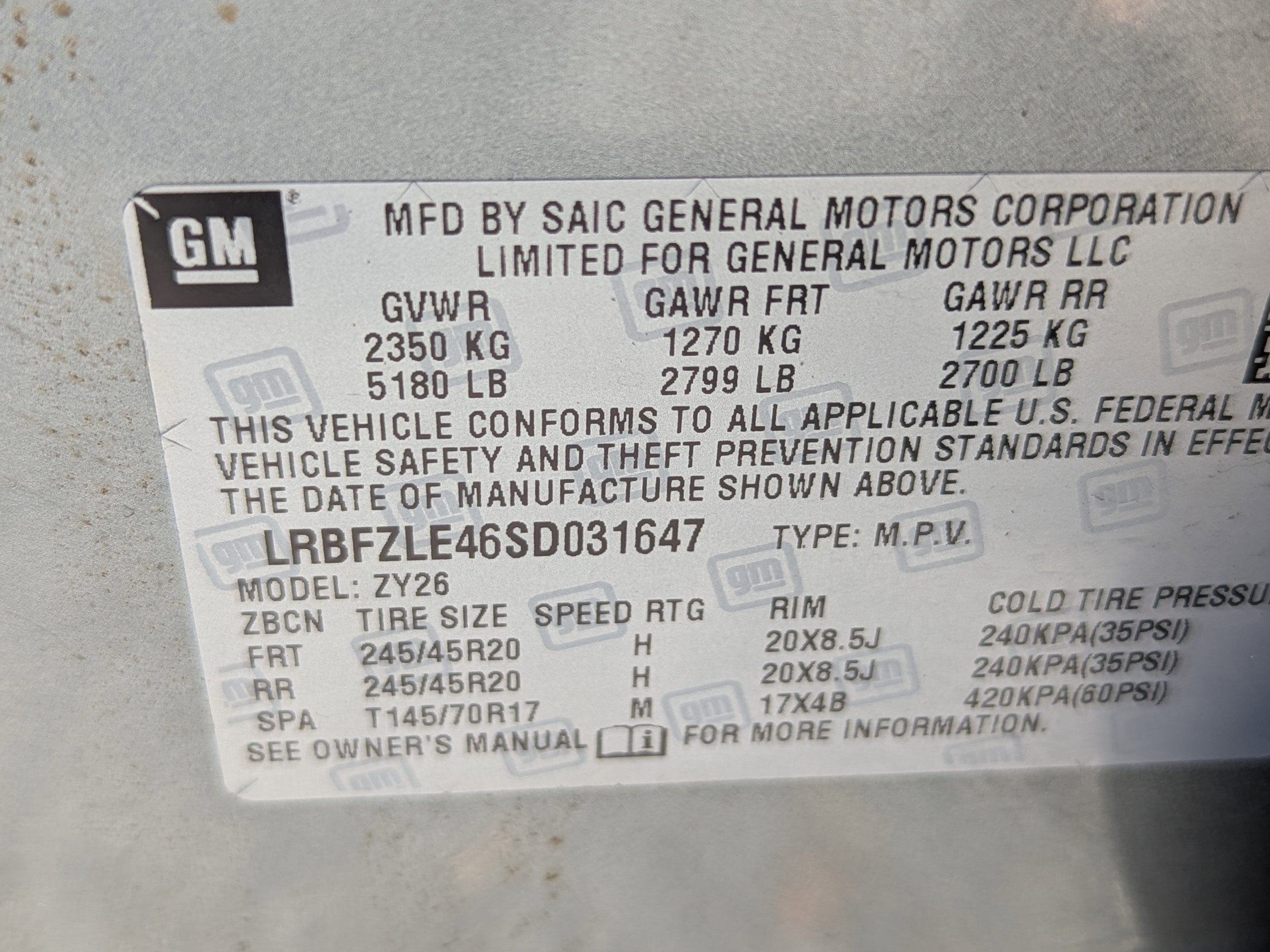 - Tires, P245/45R20 all-season